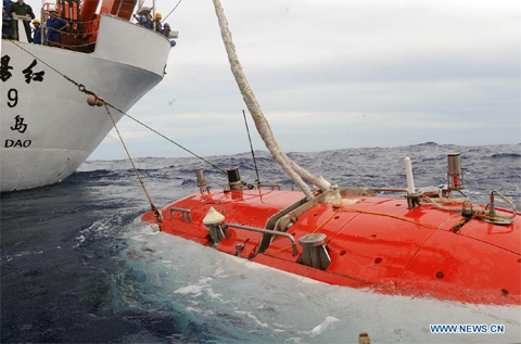 Tàu lặn sâu nhất Trung Quốc sẽ lặn xuống Biển Đông trong năm sau. Ảnh: Xinhua