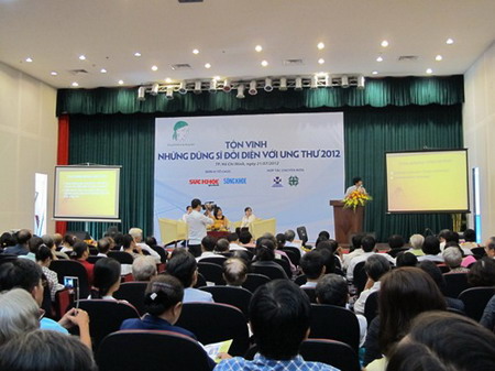 Sáng 21/7, hơn 300 người bị ung thư hoặc quan tâm đến ung thư đă đến tham dự hội thảo “Tôn vinh những dũng sĩ đối diện với ung thư” tại Hội trường TTX Việt Nam (quận 3, TP HCM).