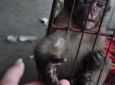 Cánh tay của chú khỉ này vươn ra như muốn van lơn một sự tự do, được trở về với rừng xanh