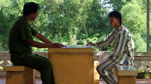 Cán bộ trại giam số 5 (Thanh Hóa) trò chuyện với một phạm nhân. Niềm tin được giảm án khiến nhiều người sống tốt hơn ở trại giam - Ảnh: TÂM LỤA