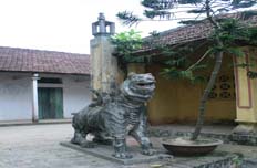 Trên đường về thăm Đình Phùng Hưng, qua cầu Cam Lâm, chúng tôi rẽ vào Đình Phố, ngôi đình thờ Tản Viên Sơn Thánh, nhìn thấy đôi hổ cao to bằng xi măng do một cụ cao tuổi làng Mông Phụ đắp tạc nên, chúng tôi cũng cảm thấy lòng bâng khuâng. Thì ra trước sức mạnh chinh phục của con người, loài thú dữ như hổ báo rừng xanh cũng trở nên có nghĩa có tình.