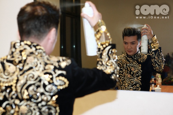 Trên bàn trang điểm là vô số những món trang sức lấp lánh đẹp tuyệt vời được Mr Đàm thiết kế riêng cho bộ trang phục "ông hoàng" của mình.