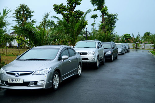 Những chiếc xe này xếp thành hàng dài khoảng hơn 20 chiếc từ đầu cổng đến tận chân tường, khiến người dân nơi đây ngưỡng mộ. Ai đi qua cũng phải ngó nhìn.