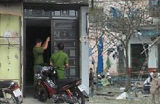 Những người chứng kiến cho biết, họ nghe tiếng nổ lớn như bom nổ tại cổng nhà ông Khánh. Các bảng hiệu sập xuống, mảnh văng sang tận lề đường bên kia, khói bốc lên mù mịt.