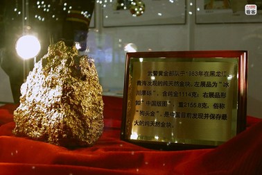 Một cục vàng hình đầu chó được lực lượng đặc biệt của quân đội Trung Quốc tìm thấy năm 1983 tại Hắc Long Giang nặng 2.155,8 g