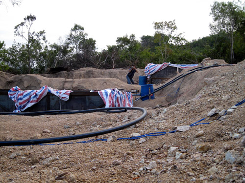 Các bể lọc vàng bằng sắt đã được Công ty Vạn Hạnh Phú Yên lắp đặt trái phép trong khu vực mỏ vàng - Ảnh: Đức Huy