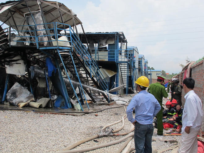 10h sáng 14/8, khu tập thể của 300 công nhân Trung Quốc làm việc cho dự án Nhiệt điện 2 Hải Phòng (Thủy Nguyên, Hải Phòng) xảy ra cháy lớn.