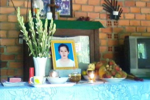 Vẻ tang tóc đau thương bao trùm lên căn nhà nhỏ. Giữa căn nhà là một chiếc bàn thờ được lập vội, khói hương nghi ngút và sau đó là tấm di ảnh của Ngân. Cô gái 17 tuổi mang khuôn mặt tròn trịa, ngây thơ nhưng ánh mắt to tròn phảng phất vẻ đượm buồn.