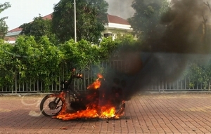 Hà Nội: Xe Wave bỗng nhiên bốc cháy dữ dội
