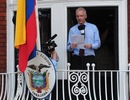 Julian Assange xuất hiện trên ban công Đại sứ quán Ecuador ở thủ đô London hôm 19/8 trước sự chứng kiến của báo giới và những người ủng hộ.