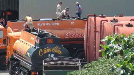 Tấp nập xe bồn ở bãi xăng dầu Trâu Điên.