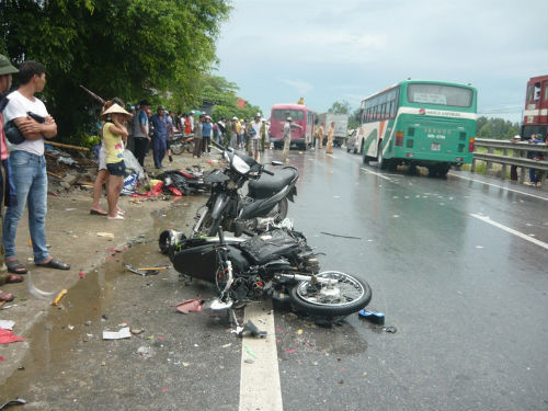 Cùng lúc đó, có 5 xe máy đang lưu thông theo hướng ngược lại. Do không làm chủ được tốc độ nên đă tông thẳng vào 5 xe máy trên. Vụ việc khiến toàn bộ số người đi trên 5 xe máy thương vong. Trong đó 2 người chết tại chỗ, 4 người tử vong sau khi đến bệnh viện, số c̣n lại đang trong t́nh trạng nguy kịch.