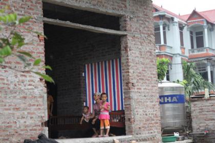 Khi biết chúng tôi muốn hỏi chuyện về em trai và em dâu của mình, chị đã chỉ chúng tôi lên nhà trên, nơi mẹ và mấy đứa trẻ đang tíu tít bên nhau. Chạy qua khoảng sân đất, có 3 luống hoa đang ươm mầm, chúng tôi lên căn nhà của vợ chồng Đông mới xây xong. Nhà mới xây thô, nền vẫn để đất. Bà Trần Thị Thực, mẹ của Đông đang ngồi cùng các cháu trên chiếc giường cũ kỹ, không có chiếu, chỉ có dát giường. Bà Thực chuyện trò rằng vừa ra Hà Nội thăm con dâu về. “Cháu đỡ nhiều rồi, nói chuyện được, chỉ có điều nhìn thấy con bé lớn này thì khóc” vừa nói, bà vừa lôi cô con gái lớn của Đông và Thư lên 5 tuổi vào lòng. Cô bé vừa được bà tắm xong, tóc ướt mèm, chưa mặc áo. Bà Thực mặc nhanh chiếc áo cho cháu gái. Chiếc áo bị rách, hở một bên vai, bà ngượng nghịu túm lại dỗ dành “áo rách rồi, để lát bà khâu cho cháu”.