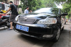 Sự việc trên được phát hiện vào lúc 16 giờ 45 phút ngày 11.9. Vào thời điểm trên, trước cửa nhà số 31-33 trên đường Ngô Quyền (thuộc P.Phan Chu Chinh, Q.Hoàn Kiếm, TP.Hà Nội) xuất hiện hai chiếc ô cùng mang BKS 80B - 5599.