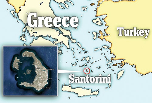Cuộc nghiên cứu được công bố sau một số báo cáo hồi đầu năm nay cho thấy sự tái diễn của hoạt động địa chấn bên dưới núi lửa. Tuy nhiên, chẳng ai biết được khi nào nó sẽ thực sự thức giấc. Santorini là hòn đảo nằm ở phía nam biển Aegean, cách đất liền khoảng 193 km về hướng đông nam. Nó là đảo lớn nhất của một nhóm đảo nhỏ hình tròn, cũng gọi là Santorini, tàn tích còn sót lại của một miệng siêu núi lửa. Đây là thủ phạm quét sạch nền văn minh Minoan, và có thể đã sản sinh ra huyền thoại của thành phố mất tích Atlantis. Khi núi lửa bùng nổ vào năm 1620 trước Công nguyên, nó tạo ra các cơn sóng thần cao 12 m đủ sức cuốn sạch nền văn minh đang đơm hoa kết trái ở Địa Trung Hải. Hầu hết phần đảo Santorini trước đây đã bị hủy hoại hoặc chìm xuống nước, tạo nên một cụm vòng đảo nhỏ hơn nằm lọt thỏm trong các đảo lớn của Hy Lạp tại vùng biển trên.