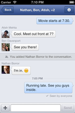 Ứng dụng tán gẫu Facebook Messenger vừa được nâng cấp để chạy trên các thiết bị sử dụng hệ điều hành iOS 6 của Apple.