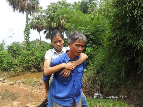 Đă 9 năm qua, người dân làng Ng̣i (xă Động Đạt, huyện Phú Lương, Thái Nguyên) không c̣n lạ lẫm với h́nh ảnh người cha ngày ngày trèo đèo, lội suối cơng con đi học. Có thời gian trời mưa tầm tă hàng tháng, đường sá lầy lội nhưng anh Vinh vẫn đều đặn ngày 4 lượt đưa, đón con gái đến lớp.
