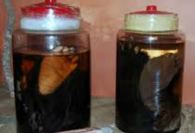 “Trong hũ thuỷ tinh là một bộ tay chân gấu. Ngâm quá lâu nên chỉ còn xương làm mọi người lầm tưởng là bàn tay trẻ em”, ông Trung phân bua.