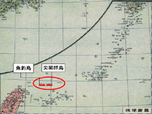 Tấm bản đồ của Trung Quốc xuất bản năm 1960 cho thấy quần đảo Senkaku (Bắc Kinh gọi là Điếu Ngư) thuộc lãnh thổ Nhật Bản. Ảnh: Kyodo