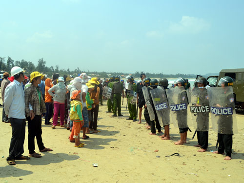 “Cả bãi biển diễn ra một cảnh tượng vô cùng hỗn loạn. Người la, kẻ hét ào ào như đánh trận. Những cục đá và cát bay tới tấp về phía lực lượng chức năng. Tui đứng xem sợ bị vạ lây nên lo chạy đi nơi khác”, một người dân cho biết.