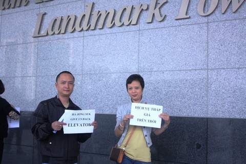 Các cư dân phản đối "dịch vụ thấp, giá trên trời" ở chung cư Keangnam - ảnh: Thanh Tùng