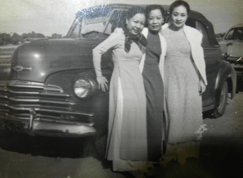 Thời c̣n trẻ, cách đây gần 1 thế kỷ, NSND Phùng Há (b́a phải) là một trong những người phụ nữ hiện đại đầu tiên tại Việt Nam biết lái xe ôtô... Ảnh tư liệu gia đ́nh cố NSND Phùng Há.
