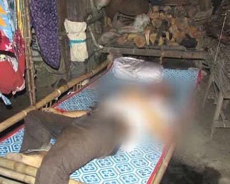 Nhiều chạy ngay xuống bếp lấy cây rựa lên chặt vào cổ Xí. Nạn nhân còn giãy giụa, Nhiều tiếp tục lấy con dao cứa vào cổ khiến nạn nhân chết ngay tại chỗ.