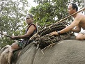 Khi đă săn bắt được voi con rừng người ta đem về cho các thợ thuần dưỡng nhiều kinh nghiệm thu phục chúng. Thời gian thần dưỡng voi kéo dài 5 – 7 tháng, con nào khó tính có thể kéo dài vài năm. Ban đầu người ta dùng một cái cùm h́nh chữ V được làm bằng 2 cành cây gai nhọn buộc vào cổ voi con, dùng dây thừng kéo lên cao 2, 3 mét so với mặt đất để phạt chúng. Dùng 2 cái cùm số 8 bằng dây gai nhọn sắc, một cái cùm vào 2 chân trước, cái c̣n lại cùm hai chân sau nhằm tập cho nó bước đi chậm chạp, giảm tính hung hăng, hoang dă.