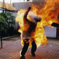 Nghịch tử hất xăng thiêu sống cha rồi ném đá