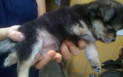 Chú chó con này thiếu một chân trước, còn 2 bộ phận sinh dục nằm giữa 2 chân sau. Từ khi xuất hiện con chó lạ này, nhiều người hỏi mua về nhà nuôi nhưng người nhà chị Thu từ chối để lại nuôi.