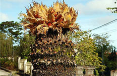Đây là lần đầu tiên cây vạn tuế này đơm hoa, kết quả.Ở giữa thân cây vạn tuế, đọt ngọn non đang đâm chồi này lộc sau những chùm quả vàng rực.Cây vạn tuế già chơ chọi chỉ còn mình thân với chùm quả trên ngọn.Quả vạn tuế có lớp vỏ ngoài mềm nhưng hạt bên trong thì rất cứng.Nhiều người cho biết, đây là lần đầu tiên họ chứng kiến một cây vạn tuế có quả.