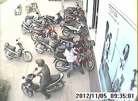 Độc giả Nguyễn Thành Hưng, người chia sẻ video này cho biết: "Lúc 9h30 ngày 05/11/2012, lợi dụng tình hình lúc công ty đang bận rộn tiếp khách hàng, xe máy của một nhân viên để khuất tầm mắt cửa ra vào, hai kẻ gian đến phá khóa nhưng may mắn chúng không lấy được xe".