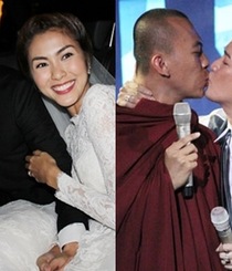 Bức ảnh nhạy cảm Mr Đàm "khóa môi" sư thầy trong một buổi đấu giá đă gây huyên náo trong cộng đồng. Trước búa ŕu dư luận ca sĩ Đàm Vĩnh Hưng đă gửi thư xin lỗi. C̣n 2 sư thầy đă chịu h́nh phạt cho hành động “phàm tục” của ḿnh.