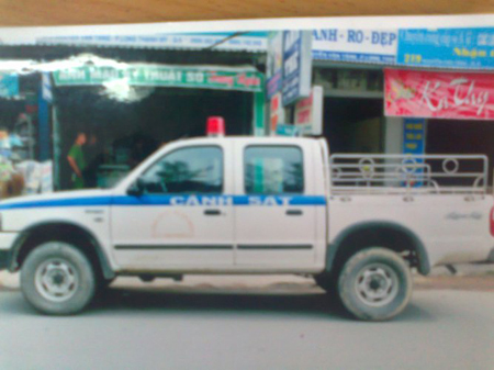 Khi đến khu vực cầu vượt Khu công nghệ cao th́ cả bọn phát hiện xe ôtô công vụ của Công an phường Long Phước BKS 51A đang trên đường đi làm nhiệm vụ lưu thông phía trước.
