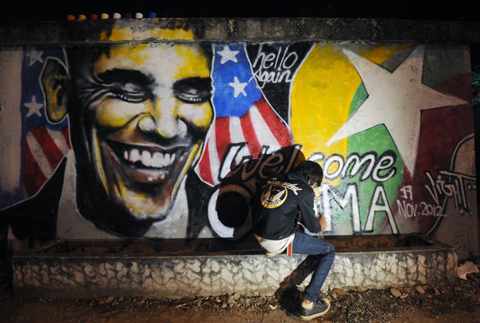 Những người bán hàng rong đang bán những lá quốc kỳ Mỹ trong khi họa sĩ địa phương Arkar Kyaw bận bịu với việc vẽ tranh kiểu graffiti lên những bức tường của Yangon, với h́nh ảnh nụ cười tươi của tổng thống Mỹ và câu "Chào đón Obama". Đây là một điều không thể h́nh dung cho măi tới tận gần đây ở một quốc gia mà nhiều thập kỷ liền được lănh đạo bởi những vị tướng vốn không được ḷng phương Tây.