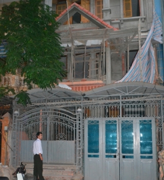 Căn biệt thự này là ngôi nhà 4 tầng, đang được chủ nhà sửa chữa lại. Hệ thống giàn giáo được bắc lên đến lan can tầng 3, đó cũng là vị trí nạn nhân nhảy lầu.