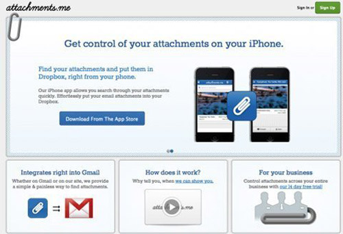 Ngoài đính kèm các file trên đám mây, Attachments.me là một giải pháp rất tuyệt vời để sắp xếp tất cả các file đính kèm đã nhận và gửi qua email. Chỉ cần truy cập tài khoản của bạn, bạn sẽ thấy một thư viện tất cả các email đính kèm và có thể sắp xếp chúng theo cách mình thích. Điều này rất tiện lợi so với việc scan hay tìm kiếm file trong hộp thư của bạn. Bạn cũng có thể dễ dàng đính kèm file lần nữa cho một email mới, ngay từ ứng dụng web.