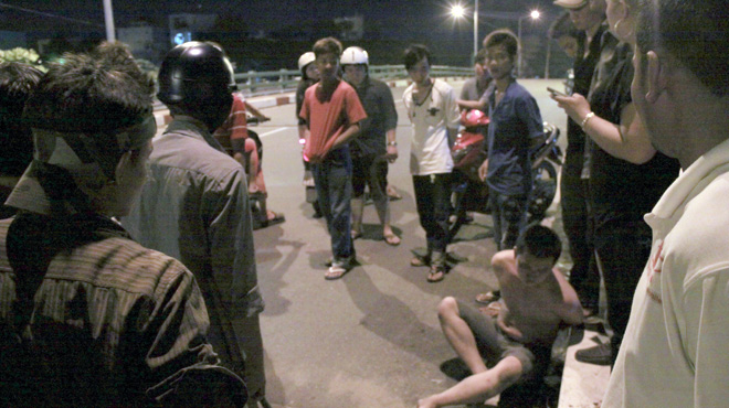 Một đối tượng cướp giật bị bắt trên cầu Bùi Hữu Nghĩa (Q.B́nh Thạnh, TP.HCM) - Ảnh: SƠN B̀NH