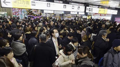 Người dân Nhật chen chúc ở nhà ga Sendai, do các đoàn tàu phải dừng hoạt động sau động đất. (Ảnh: Reuters)