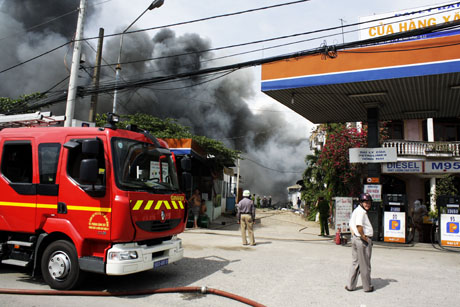 Một vụ hỏa họa cực lớn xảy ra vào trưa 14/12 tại một bãi chứa lốp xe ô tô nằm sát một cây xăng trên quốc lộ 1A, phường An Phú Đông, quận 12 khiến cả khu dân cư náo loạn, một người đã bị thương vì bình gas phát nổ.