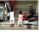 Hai bé trai bị bắt quỳ gối trên đại lộ