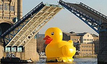 Sáng hôm qua (11/12), người dân Anh đã thả một chú vịt đồ chơi khổng lồ trên sông Thames. Kích cỡ quá khổ của chú vịt này khiến nhiều người phải sửng sốt: cao 60 feet (18 m) và nặng khoảng nửa tấn. Chiều cao của chú vịt đồ chơi này ngang ngửa với các tòa nhà chọc trời ở London.