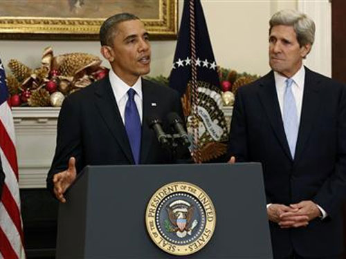 Tổng thống Mỹ Barack Obama tự tin rằng thượng viện sẽ sớm thông qua quyết định bổ nhiệm thượng nghị sỹ kỳ cựu John Kerry. Ảnh: Reuters
