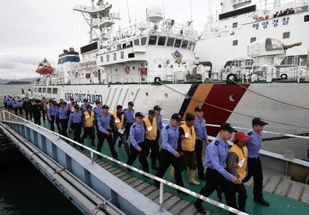 Lực lượng phòng vệ bờ biển Hàn Quốc bắt giữ tàu và thủy thủ Trung Quốc với cáo buộc đánh bắt trái phép. Ảnh: Getty Images