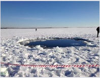 Hố lớn trên hồ băng Chebarkul được cho là do thiên thạch trong vụ mưa sao băng ở Nga gây ra.