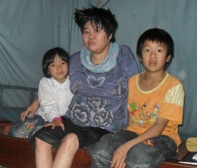 Chị Thuần cùng hai con nhỏ