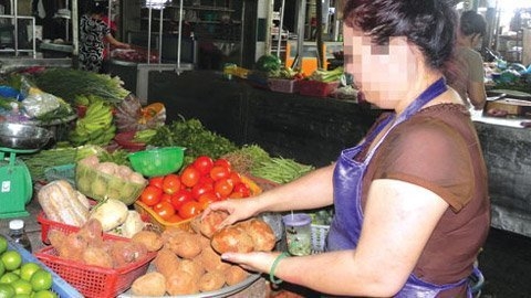 Tại khu hàng rau củ, trái cây chợ Bà Chiểu (Q.Bình Thạnh), dễ dàng nhận ra các loại nông sản nhờ hình thức đẹp, nổi bật. Chị chủ hàng vừa bào cà rốt thành sợi nhỏ vừa tư vấn: “Nếu muốn ăn thì đừng mua cái này, loại này để giao cho các quán ăn vì cái này là hàng TQ”. Chị Lan - tiểu thương chợ Phạm Văn Hai (Q.Tân Bình), chỉ tay vào rổ tỏi, rổ bông cải, nói: “Đó, anh coi đi tỏi, hành, cà rốt, khoai tây, bông cải, nấm cũng hàng TQ, đến củ gừng cũng nhập từ TQ. Mấy sạp ngoài kia, người ta cũng toàn bán hàng TQ. Vì hàng TQ rẻ quá, nếu mình không bán thì không cạnh tranh lại họ. Các nhà hàng, quán ăn họ rất thích vì rẻ, lời nhiều hơn”. “Chúng tôi biết đấy là hàng TQ, độc hại nhưng vẫn lấy về bán, vì giá rẻ. Chúng tôi không bán thì người khác cũng lấy hàng TQ về bán, thành ra chúng tôi sợ mất khách, phải lấy về bán. Khi bán, chúng tôi nói thiệt cho khách biết để tùy họ lựa chọn”, chị Lan phân bua.