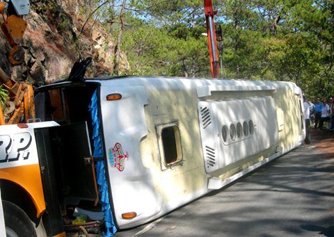 Xe khách va vào núi, lật giữa đèo