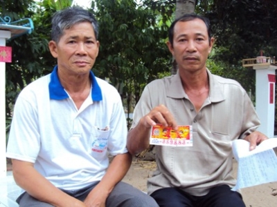 Ông Dương Thanh Tùng cùng tấm vé số (bên phải). Ảnh: Tiền phong