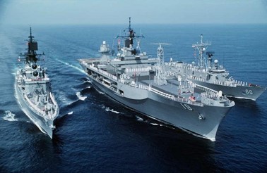 Tàu chỉ huy đổ bộ USS Blue Ridge (giữa) của Hải quân Mỹ